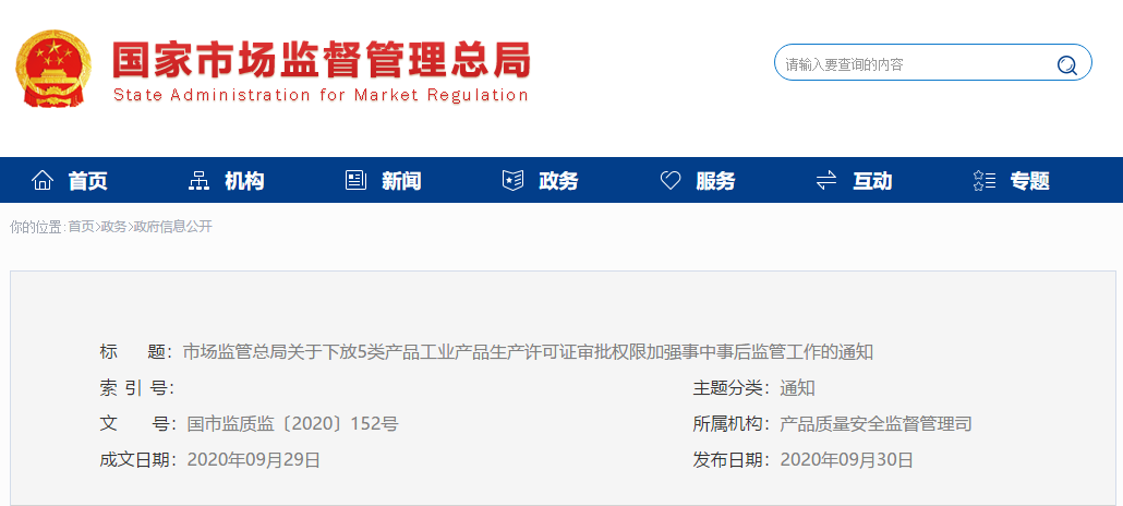 据水泥人网此前报道,2020年9月30日,国家市场监管总局发布通知,自通知印发之日起,建筑用钢筋、水泥等5类产品由省级市场监管部门负责受理、审查、审批、发证,总局不再对新申请企业实施审查、审批。