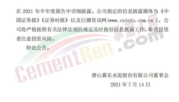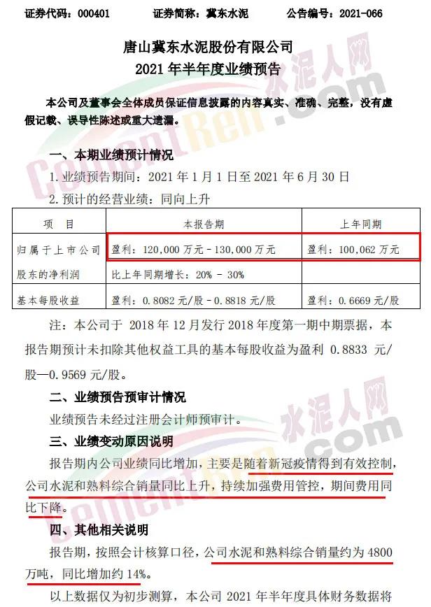 今年上半年,冀东水泥业绩同比增加,主要是随着新冠疫情得到有效控制,公司水泥和熟料综合销量同比上升,持续加强费用管控,期间费用同比下降。