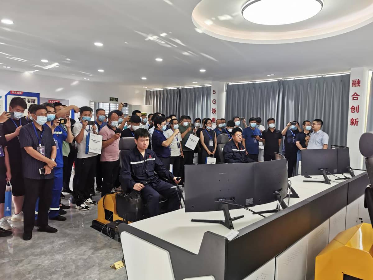 在河南能源焦煤集团千业水泥公司,观摩组成员实地参观了千业水泥5G绿色无人矿山项目的露天矿山作业和信息中心,现场感受千业水泥5G赋能下的挖掘机远程操作、绿色无人矿卡自动运输、无人车自动编队运行等智慧应用。