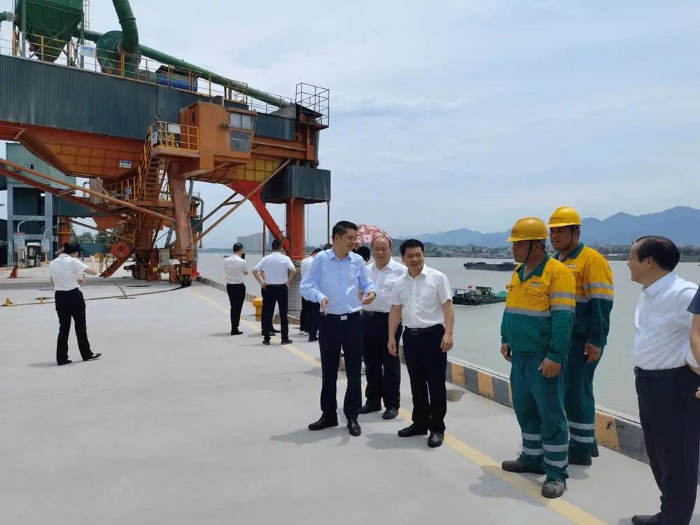 上午廖俊一行实地考察杭州市桐庐县红狮水泥厂区和自运码头,了解企业国际先进新型干法生产水泥工艺和水泥运输流程。