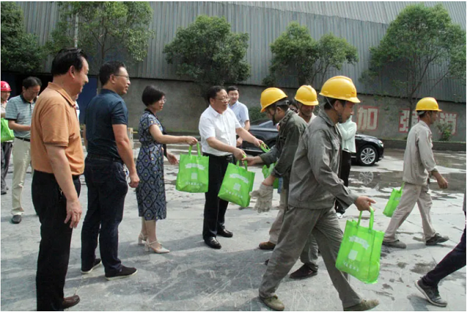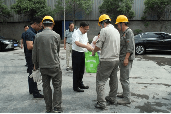 在集团董事长、总经理闫友平陪同下,汤明来到花林水泥公司生产区,把装有防暑降温物品的“清凉礼包”送到职工手中,并向所有奋战在一线的职工致以亲切的问候,对他们为远安经济社会发展所做的贡献表示感谢。