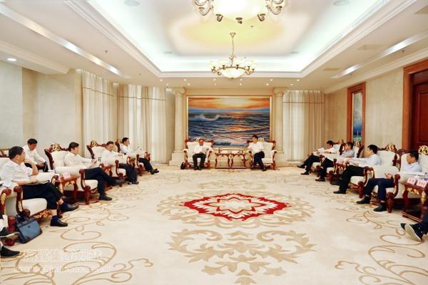 2021年7月17日,阜阳市委书记孙正东、市长刘玉杰率领阜阳市党政代表团一行来海螺集团考察,集团公司党委书记、董事长王诚在集团总部会见了阜阳市党政代表团一行。阜阳市委秘书长王波,副市长李红、刘玉建,政协副主席秦煦,海螺集团总经理任勇,集团副总经理王建超、万涌,集团总经理助理方原,海螺水泥副总经理李晓波等参加了会见。