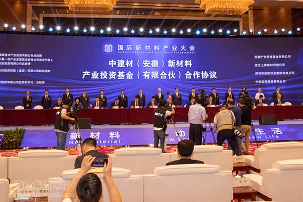 在开幕式现场,王诚与领导嘉宾共同见证了新材料产业投资基金合作协议和首批项目投资意向书签署。投资基金由中国国有企业混合所有制改革基金、国家制造业转型升级基金股份、海螺水泥、中国建材等14家单位共同出资设立。投资基金目标总规模为人民币200亿元,其中设立时首期基金规模为150亿元。海螺水泥作为有限合伙人,拟以自有资金认缴出资16亿元,占合伙企业出资额的10.67%。投资基金将重点投资于新材料产业,包括但不限于纤维及复合材料、玻璃基材料、膜材料、光电材料等新材料领域。