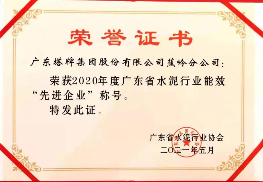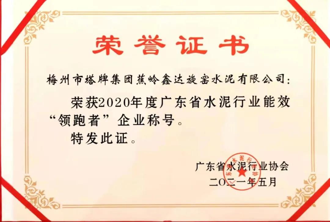 日前,2020年度广东省水泥行业能效对标工作总结会在广东惠州召开,会上对能效工作先进企业进行了表彰。塔牌集团属下企业鑫达公司荣获2020年度广东省水泥行业能效“领跑者”企业称号,蕉岭分公司、惠塔公司分别荣获2020年度广东省水泥行业能效“先进企业”称号。