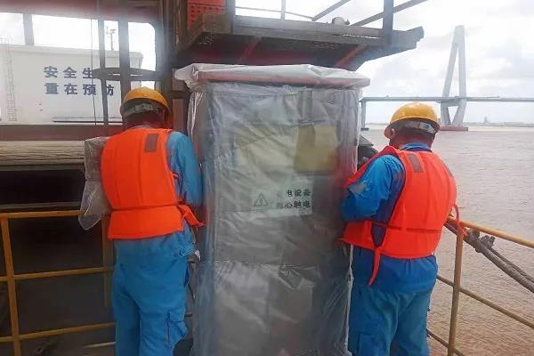 做好安全防护。提前储备好防台沙袋、雨衣、雨靴、抽水泵等应急物资;室外电气柜用防水布遮盖并断电;对码头门机、防护拉绳进行固定,门机行走机构用夹轨器、铁契放置到位;清理厂区排水沟淤泥,确保渠道排水通畅;支撑加固厂区树木,避免大面积树木折断和倒伏等,全力做好防范工作。