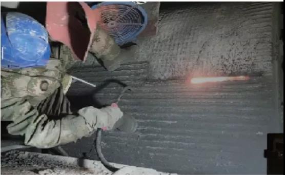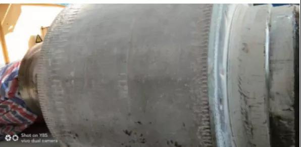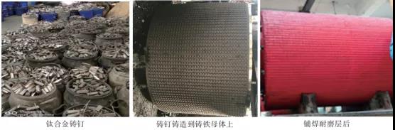 图:新型铸钉辊现场修复