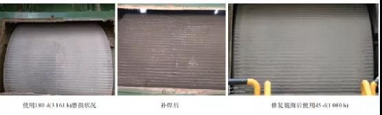 辊面铺焊周期由原来的3个月(生产86万吨生料)一次,提升到现在的6个月(生产142万吨生料)一次,原来铺焊需要车削露出母材,现在可直接铺焊,铺焊时间从原来的12天降低到现在的4天,单次维修费用由原来的20万元降低到现在的6万元。