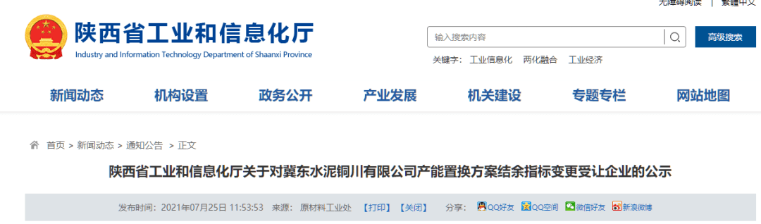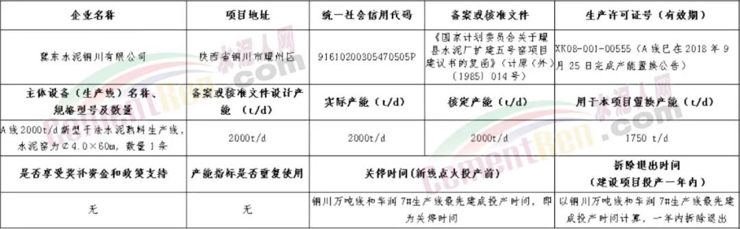 投资者之所以有上述的疑问或是因本月内两则产能置换公示都是关于金隅冀东和华润水泥。据了解,7月25日,陕西省工信厅发布《关于对冀东水泥铜川有限公司产能置换方案结余指标变更受让企业的公示》提到,按照工信部相关文件要求,《冀东水泥铜川有限公司产能置换方案》(2018年9月25日公告)中1750t/d水泥熟料产能指标(结余未使用指标),经铜川市政府同意,受让企业拟由冀东水泥铜川有限公司变更为华润水泥(封开)有限公司,现对变更事宜进行公示。