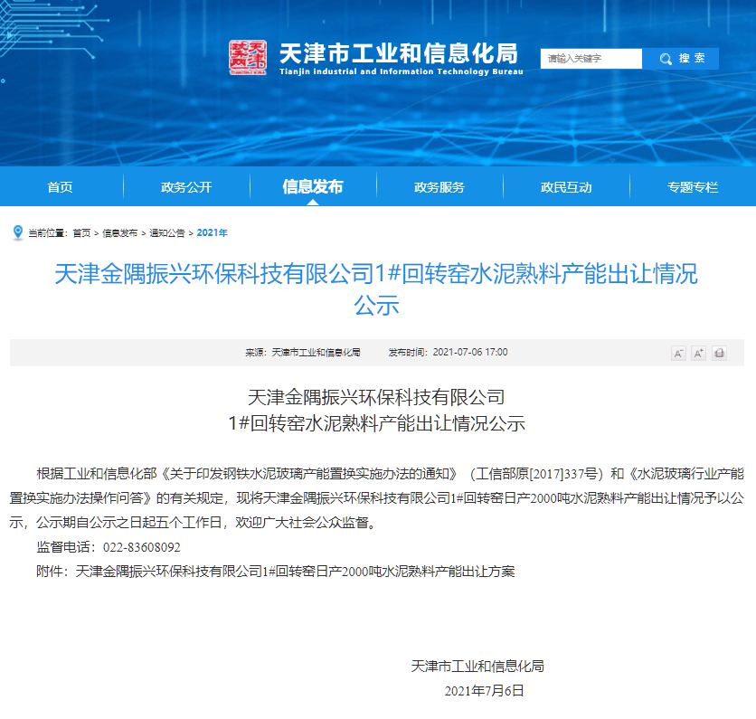 按照工信部《水泥玻璃行业产能置换实施办法》(工信部原〔2017〕337号)和《水泥玻璃行业产能置换实施办法操作问答》要求,《冀东水泥铜川有限公司产能置换方案》(2018年9月25日公告)中1750t/d水泥熟料产能指标(结余未使用指标),经铜川市政府同意,受让企业拟由冀东水泥铜川有限公司变更为华润水泥(封开)有限公司,现对变更事宜进行公示,如有异议,请致电我厅(原材料工业处)反映。