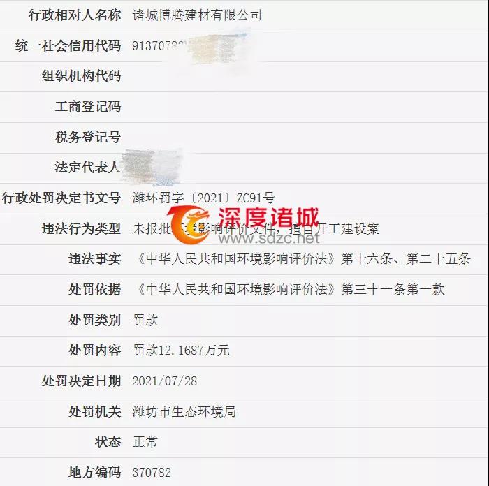 近日,潍坊市生态环境局公布信息,诸城多家单位因违法被处罚: