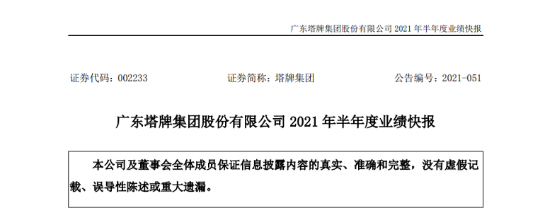 据塔牌集团7月29日发布上半年财务快报,2021年上半年,公司实现水泥产量1043.52万吨、销量1009.41万吨,较上年同期分别增长了41.36%、49.39%;实现营业收入363356.04万元,较上年同期上升了29.80%;实现利润总额、归属于上市公司股东的净利润分别为120,587.05万元、91,460.72万元,较上年同期分别小幅下降了1.42%、0.46%。
