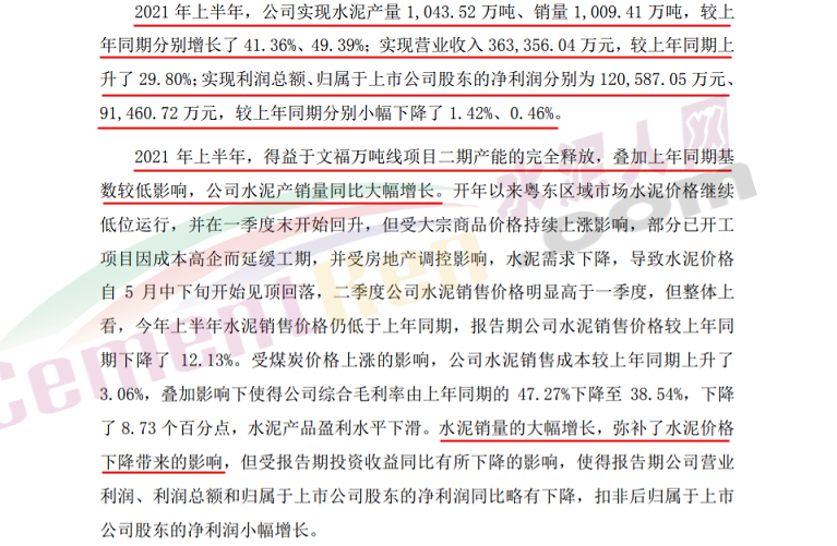 另外公司解释道,之所以有这个业绩,得益于文福万吨线项目二期产能的完全释放,叠加上年同期基数较低影响,公司水泥产销量同比大幅增长。水泥销量的大幅增长,弥补了水泥价格下降带来的影响,但受报告期投资收益同比有所下降的影响,使得报告期公司营业利润、利润总额和归属于上市公司股东的净利润同比略有下降,而其他指标产量、营收表现优异。