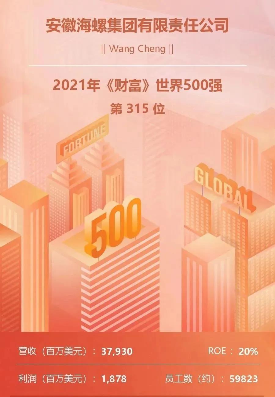 海螺集团以379.29亿美元的营业收入位居第315位,连续三年进入世界500强,排名较上年大幅提升52位;