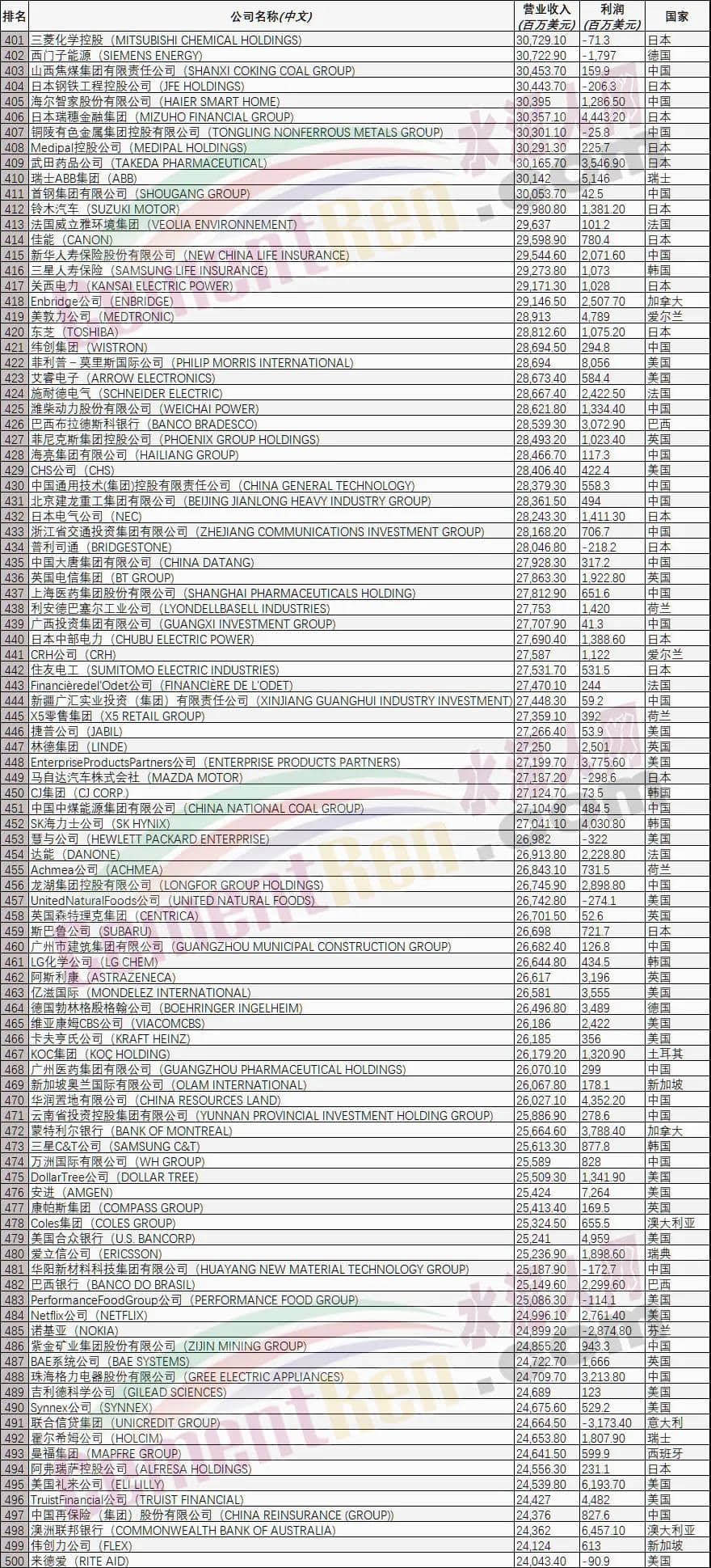 据了解,今年《财富》世界500强排行榜新上榜和重新上榜的中国公司有18家,分别是:中国船舶集团、浙江荣盛控股集团、浙江恒逸集团、融创中国控股有限公司、敬业集团、新希望控股集团、新华人寿保险、潍柴动力、北京建龙重工集团、浙江省交通投资集团、龙湖集团、广州市建筑集团、广州医药集团、华润置地、云南省投资控股集团、万洲国际、紫金矿业集团、中国再保险(集团)股份有限公司。