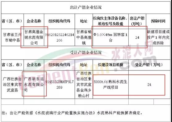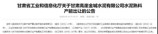 此外,甘肃省工信厅公开文件显示,2020年9月甘肃高崖金城水泥有限公司24万吨产能出让至广西新东运水泥有限公司用于新建5000t/d水泥熟料生产项目。