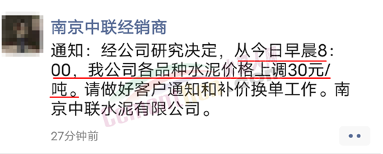 南京中联水泥有限公司通知,经公司研究决定从8月4日早8时起各品种水泥上调30元/吨。