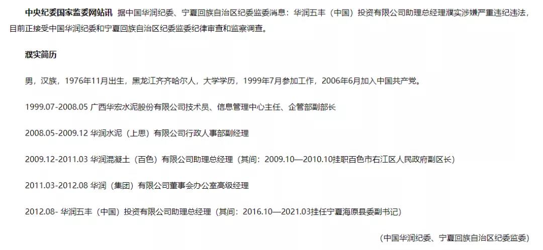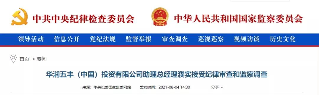 中央纪委国家监委网站讯据中国华润纪委、宁夏回族自治区纪委监委消息:华润五丰(中国)投资有限公司助理总经理濮实涉嫌严重违纪违法,目前正接受中国华润纪委和宁夏回族自治区纪委监委纪律审查和监察调查。