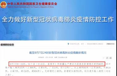 由于德尔塔变异毒株传染性高、传播力强,我国多地面临的输入风险和防控压力持续增大。据国家卫健委数据,8月7日0—24时,31个省(自治区、直辖市)和新疆生产建设兵团报告新增确诊病例96例,其中境外输入病例15例,本土病例81例。为做好加强“外防输入、内防反弹”,江苏、河南、湖南、湖北等二十多个省市地区采取了封闭管控、关闭聚集场所、全员核酸检测等施措,对于疫情的侵入和传播做到严防死守。