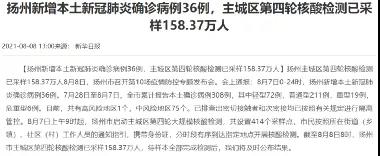 江苏扬州:8月7日上午9时起,扬州市启动主城区第四轮大规模核酸检测,共设置414个采样点。