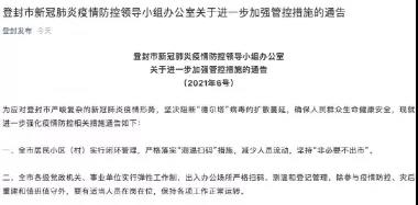河南登封:全市居民小区(村)实行闭环管理;养老院、福利院、监所等机构暂停探视活动;公共浴室、美容美发、娱乐场所、线下培训、托幼机构等密闭场所暂停开放;公墓、骨灰堂(塔陵)暂停祭扫;宗教活动场所暂时关闭;餐饮场所严禁堂食;严禁各类集聚性活动,不聚集、不扎堆;非生活必需场所一律暂时停业。