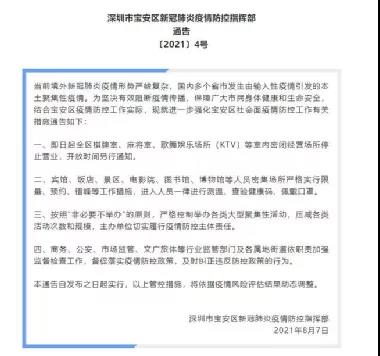 深圳市宝安区:即日起宝安区KTV、棋牌室等室内密闭经营场所停止营业。