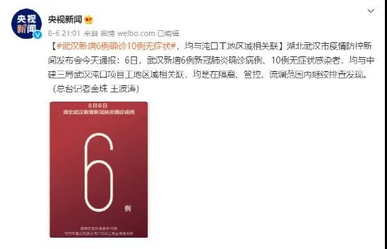 8月6日晚,武汉市召开新冠疫情防控工作新闻发布会通报,8月6日,武汉市新增6例新冠肺炎确诊病例,10例无症状感染者,均与武汉沌口项目工地区域相关联,均是在隔离、管控、流调范围内继续排查发现,该项目工地是武汉本轮输入性疫情的源头,与江苏淮安某旅行团关联,呈现唯一传播源、单一传播链、同一传播圈特点。对活动轨迹与该工地有关联的相关人员,按照“全面、详尽、彻底”的要求,仍在开展深入排查。