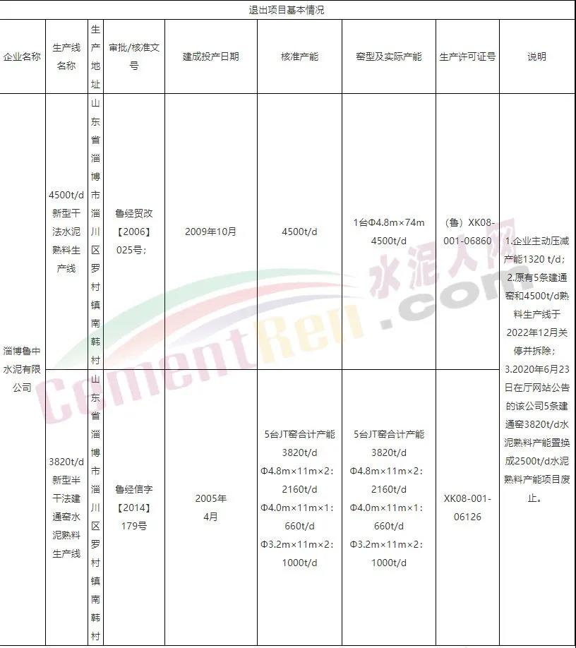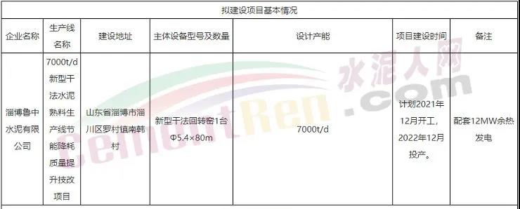 8月9日,山东省工信厅公示了《淄博鲁中水泥有限公司7000t/d新型干法水泥熟料生产线节能降耗质量提升技改项目产能基本情况》提到,按照相关文件要求将淄博鲁中水泥有限公司7000t/d新型干法水泥熟料生产线节能降耗质量提升技改项目有关产能情况予以公示。同时,2020年6月23日在厅网站公告的该公司5条建通窑3820t/d水泥熟料产能置换成2500t/d水泥熟料产能项目废止。