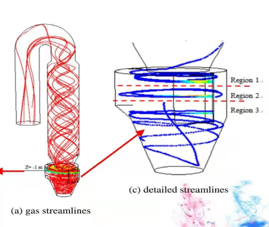 根据武汉理工大学谢峻林教授团队的数值模拟技术,日照中联水泥2#分解炉内气体流向如下图: