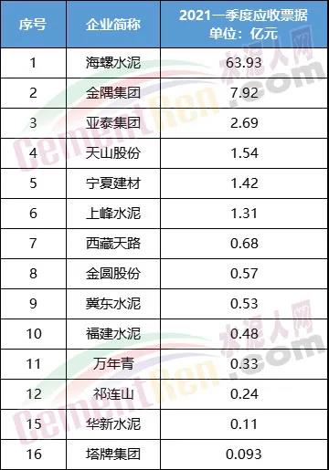 海螺水泥2021年1季度应收票据及应收账款合计74.13亿,其中应收票据达到63.93亿元。