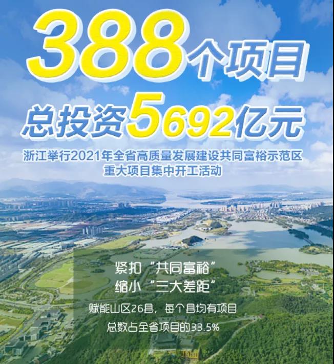 8月13日,浙江省集中开工388个重大项目,总投资5692亿元,项目平均投资15亿元,年度计划投资533亿元。此次重大项目集中开工活动紧扣“共同富裕”主题,围绕“缩小地区差距、城乡差距和收入差距”展开。