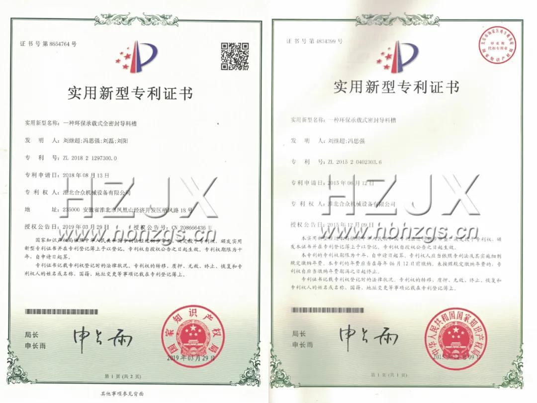 此外,作为一家专注于智能环保输送装备粉尘治理的综合性企业,淮北合众一直以来非常重视技术创新,其自主研发的“环保承载式全密封导料槽”荣获由国家知识产权局颁发的两项实用新型专利。
