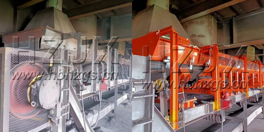 上峰水泥子公司导料槽改造前(左)后(右)对比