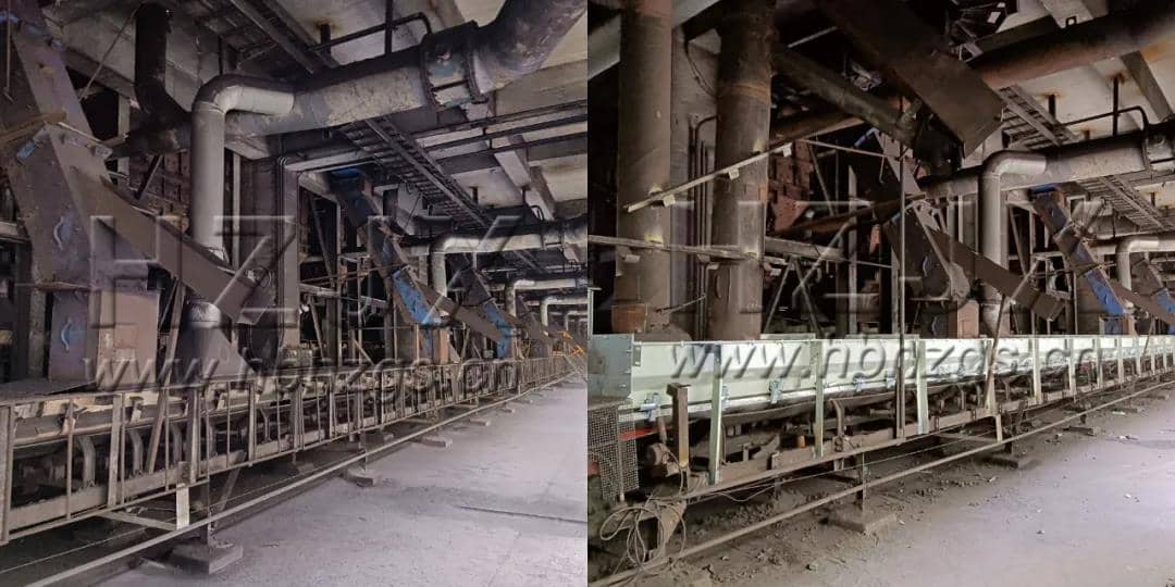 芜湖新兴铸管导料槽改造前(左)后(右)对比