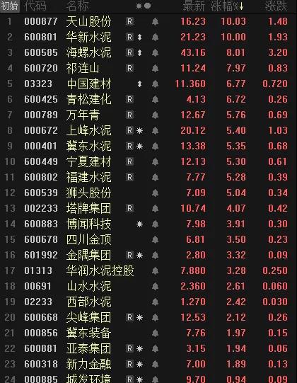 昨日(9月1日),水泥上市公司大爆发,多股出现一字涨停。截止当日收盘天山股份、华新水泥盘中涨停。