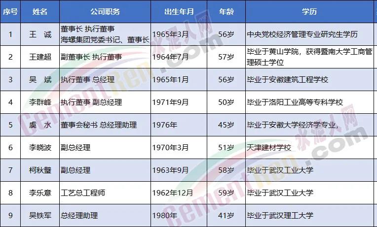上市公司数据库显示,吴斌先生,1965年1月出生,现年56岁。海螺水泥上市公司执行董事、总经理,高级经济师。