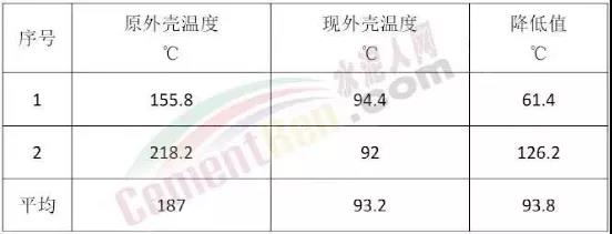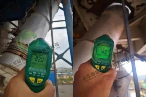 新型纳米微晶管安装到下料管中并投入使用后,在正常生产运行中,用专门的红外线成像测温仪器,对更换的部位进行测温,温度改善效果详细见下表。