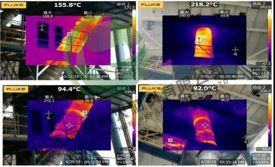 为直观形象地观察下料管外壳温度情况,下面为红外线成像测温效果对比图:
