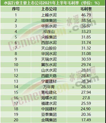 一直以来,海螺水泥被称之为水泥行业的最大“金主”、水泥行业的“赚钱王”、水泥行业的“水泥茅”。然而从企业的毛率利来看,海螺水泥连前十都进不了,与毛利率最高的上峰水泥相比,海螺水泥比上峰水泥毛利率低18.99%,低出一个金隅集团。