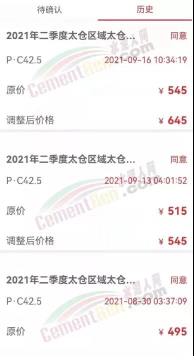 相关数据显示,太仓海螺P.C42.5水泥从8月底的495元/吨经历两次涨价后,已经涨至9月16日的报价645元/吨,涨了150元/吨。