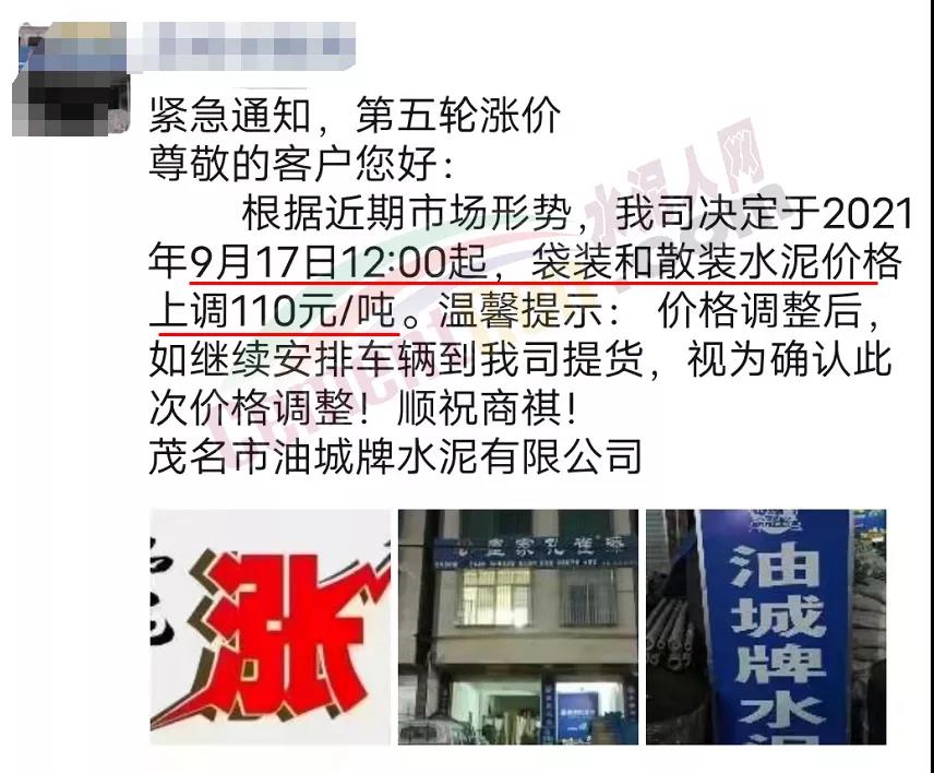 茂名市油城牌水泥有限公司通知,于9月17日12时起上调水泥价格110元/吨。