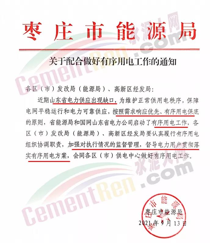 枣庄市能源局发布《关于配合做好有序用电工作的通知》称,近期山东省电力供应出现缺口,为维护正常供用电秩序,保障电网平稳运行和电力可靠供应,按照需求响应优先、有序用电保底的原则,省能源局和国网山东省电力公司启动了有序用电工作,各区(市)发改局(能源局)、高新区经发局要认真履行有序用电组织协调职责,加强对执行情况的监督管理,督导电力用户贯彻落实有序用电方案,会同各区(市)供电中心做好有序用电工作。