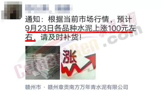 日前,江西赣州市南方万年青水泥有限公司通知,9月23日各品种水泥将再涨100元/吨。