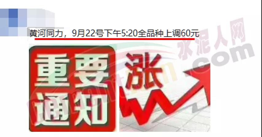 水泥人网通讯员消息:9月22日下午河南区域主要品牌企业陆续通知,下午17时起,所有品种水泥价格上调60元/吨。个别水泥企业还有跟涨上一轮调价20-30元/吨,新一轮涨价60元/吨已经来了!