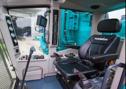 4.人文关怀,安全保障。司机室装有冷暖空调、正压系统、新风系统等,让操作手远离职业病伤害,此外,钻机上还安装了急停按钮、灭火器等,充分保障使用者的人身安全。