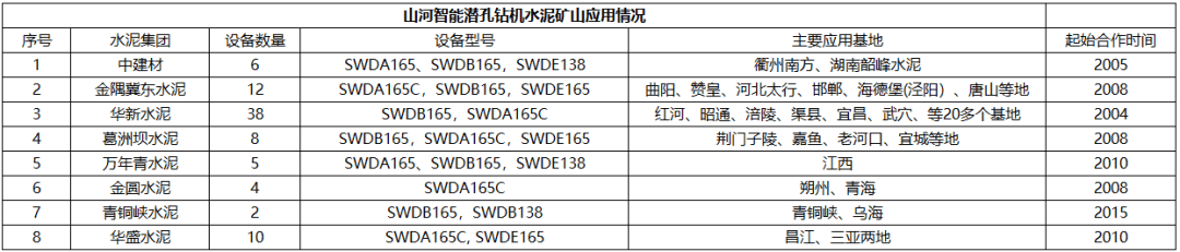 为积极应对市场变化,多家水泥企业主动转变发展方式,其中,中建材、金隅冀东、华新、葛洲坝等水泥集团从钻孔爆破、矿山开采等方面着手,选用国内凿岩钻机“领跑者”——山河智能装备股份有限公司(以下简称“山河智能”)的凿岩设备,在环保、智能、提效等方面均取得了有力的突破。