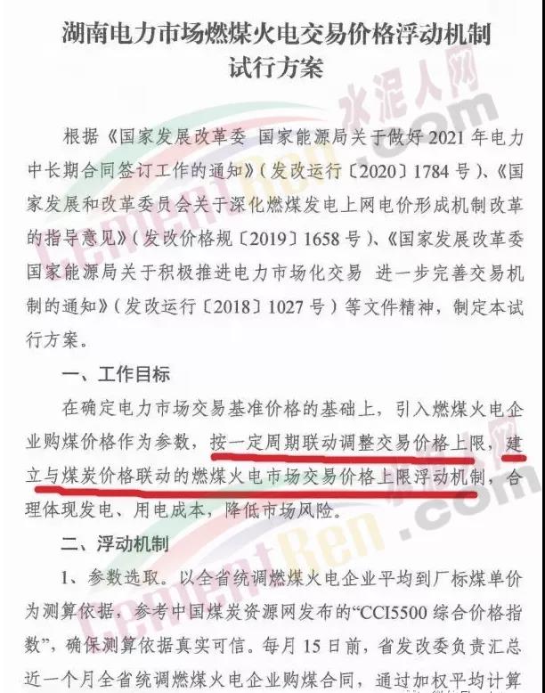 湖南省发展和改革委员会9月27日印发《关于完善我省燃煤发电交易价格机制的通知》及《湖南电力市场燃煤火电交易价格浮动机制试行方案》提到,自2021年10月起,湖南省将在确定电力市场交易基准价格的基础上,引入燃煤火电企业购煤价格作为参数,按一定周期联动调整交易价格上限,建立与煤炭价格联动的燃煤火电市场交易价格上限浮动机制,合理体现发电、用电成本,降低市场风险。