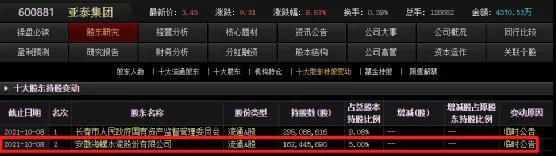 目前海螺水泥除持有亚泰集团5%股份外,其持股比例超过5%的上市公司还有新力金融和西部水泥,持股比例分别为6.08%和24%。