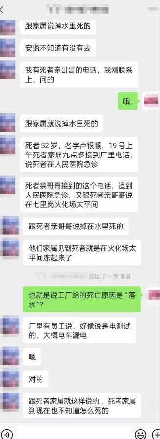上述网友对水泥人网表示,工厂相关负责人对死者家属陈述的死因是“掉水里死的”。