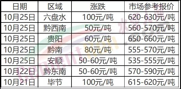 从近期各区域水泥企业报价可见,河南、贵州、山东等多区域水泥价格仍处于上涨通道。10月20日~25日贵州省内黔西南、黔东南、黔南、安顺、贵阳水泥价格上调50-80元/吨,毕节、六盘水水泥价格上调100元/吨以上。市场报价在500~630元/吨之间。