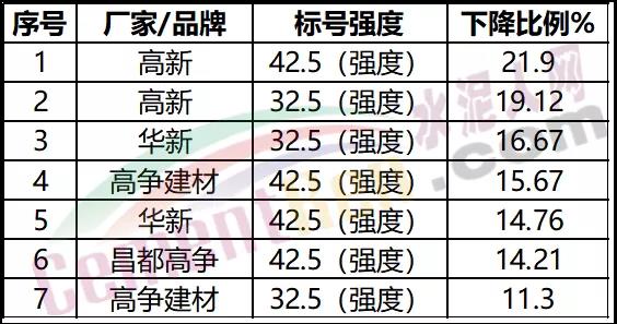 普通硅酸盐水泥出厂价格与去年同比,重点监测的8个品种价格“7降1升”,下降的分别为: